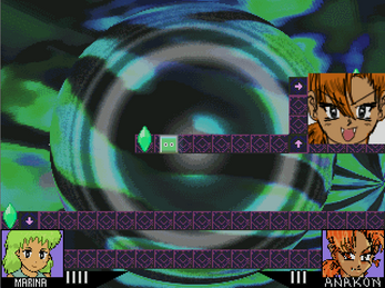 It seems what's booming nowadays is this so called Devil Game, a sliding block action puzzle game where each player puts their Devil Blocks to rumble and claim their 5 life flags. Sounds crazy, but it's everywhere, and it seems that our cute protagonist Marina will have to play to win, that is, win her mission to slay demons! Why, even they are playing Devil Game. What has this world come to? Well, it sure is a fun way to save the world, huh?